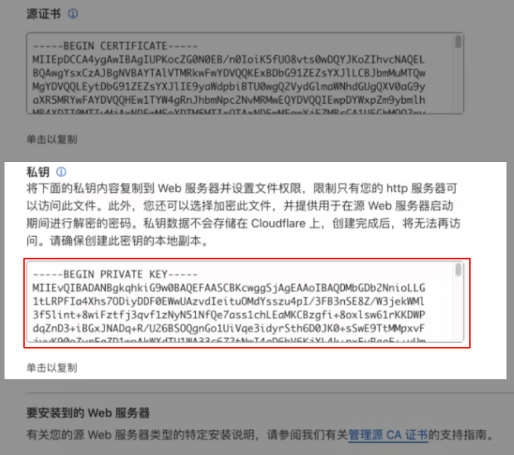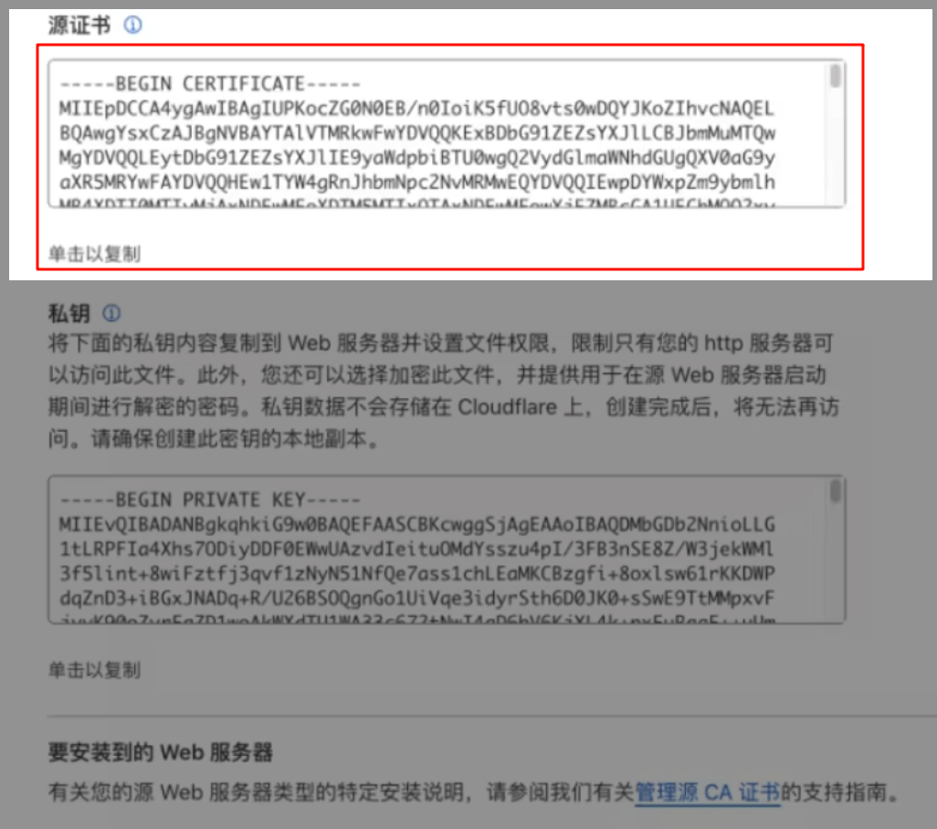 ③ 把 Cloudflare Origin CA 证书 内容一次性粘进去