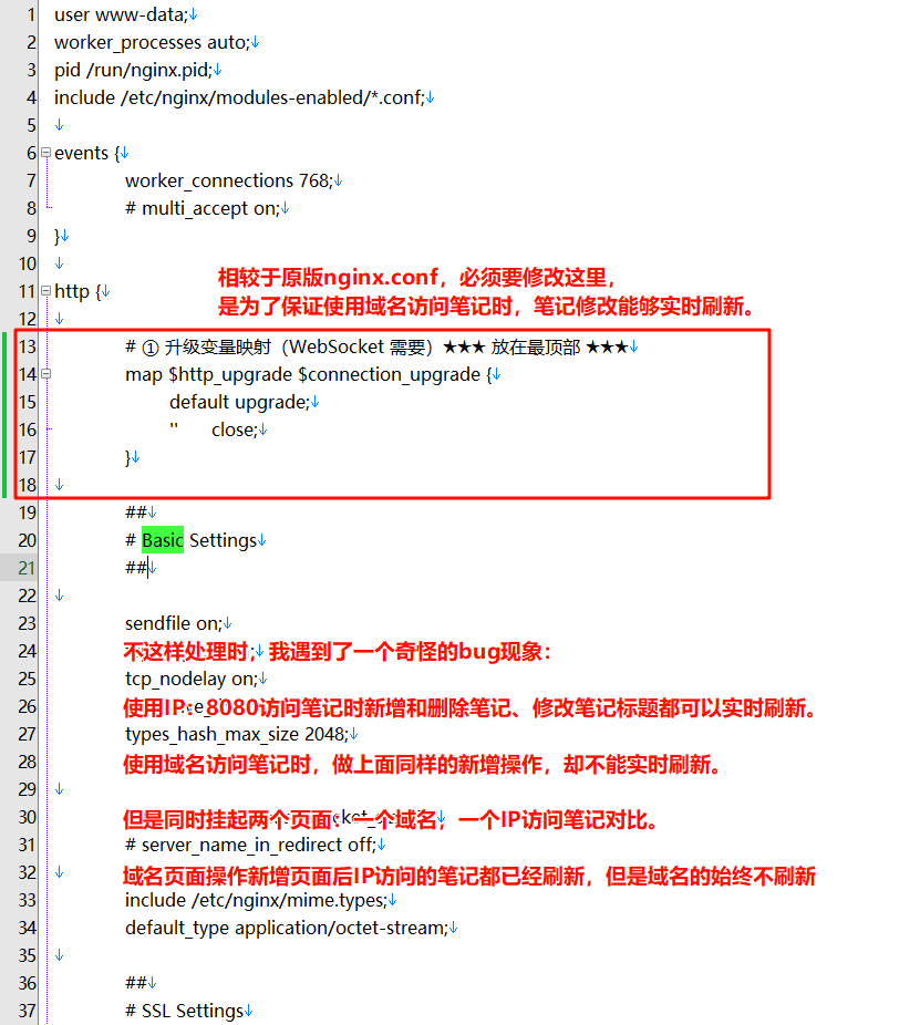 为什么要替换这个nginx.conf文件,因为我遇到了一个bug困扰了好几天才从AI那获取最终解决问题的优化。