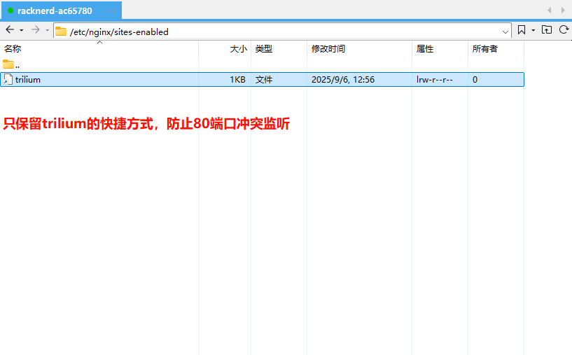 路径下的只保留trilium的快捷方式,删除/etc/nginx/sites-enabled
