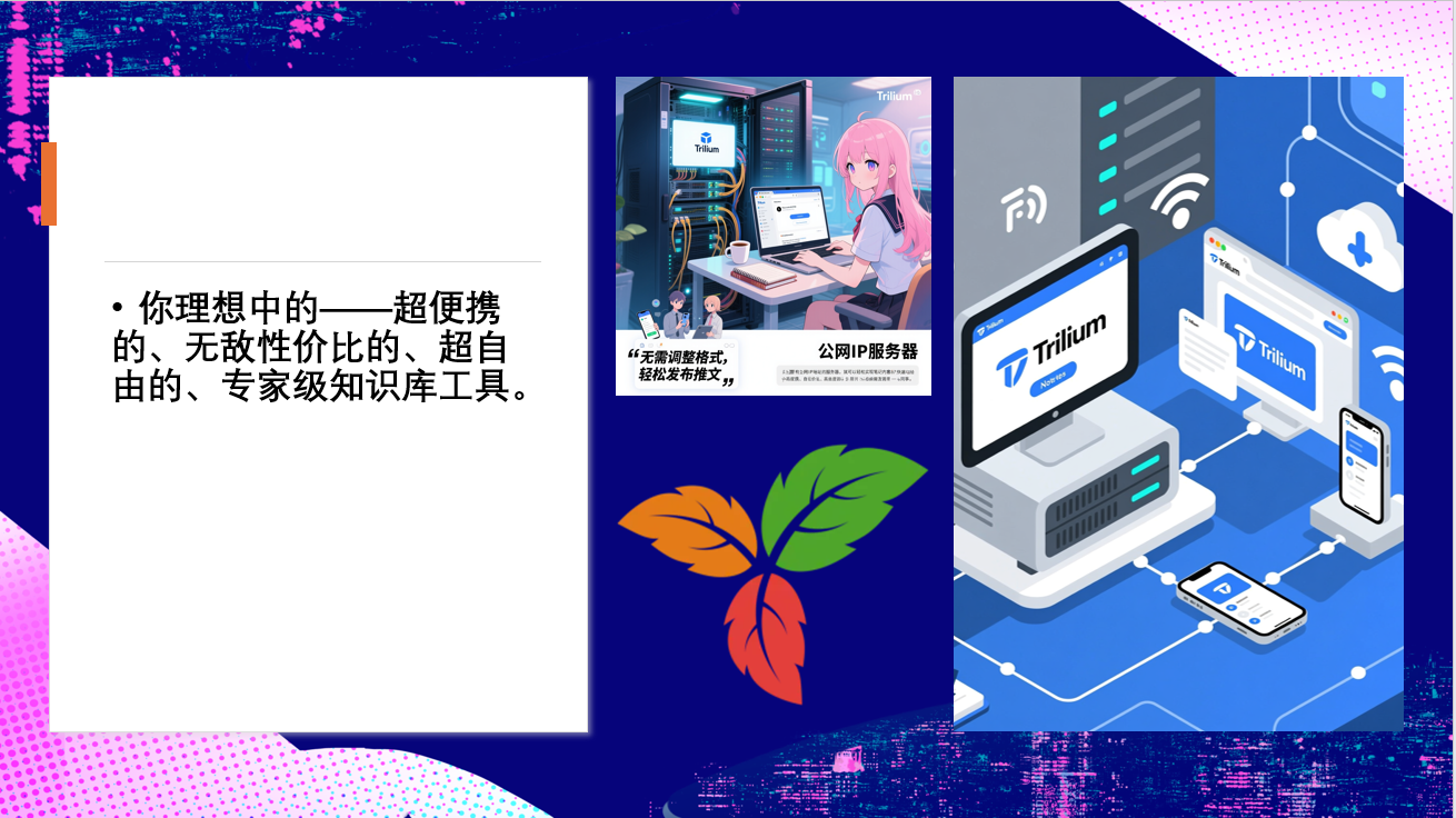 可以说搭配服务器使用的Trilium Notes绝对是你理想中的——超便携的、无敌性价比的、超自由的、专家级知识库工具。