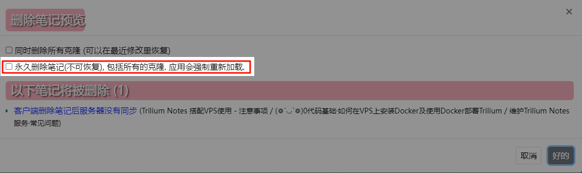 勾选了这个会导致客户端在删除笔记后立刻强制重载,不能把删除指令同步给服务端。