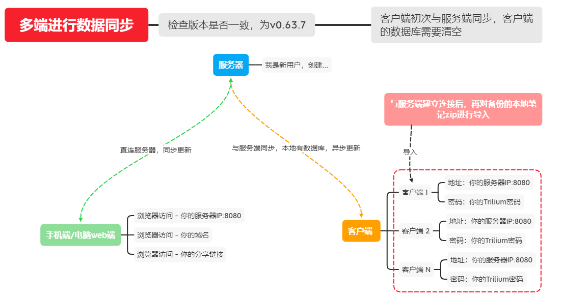 - 首先检查确保你本地使用的Trilium客户端和服务器上部署的Trilium版本一致,都是