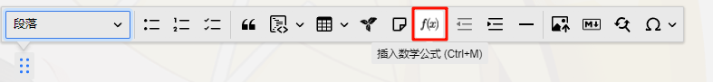 (Nate: 可以点击左边段落按钮,有个f(x)的按钮就是插入公式,快捷键是ctrl+m,支持输入Tex格式的公式)