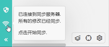 - 等本地和服务端完全同步成功后,再进行其他的修改、删除操作。受限于网络因素和笔记大小,同步可能会比较漫长,请务必确保同步期间网络畅通。同步成功后,树导航的左下脚会显示成这个WiFi图标。