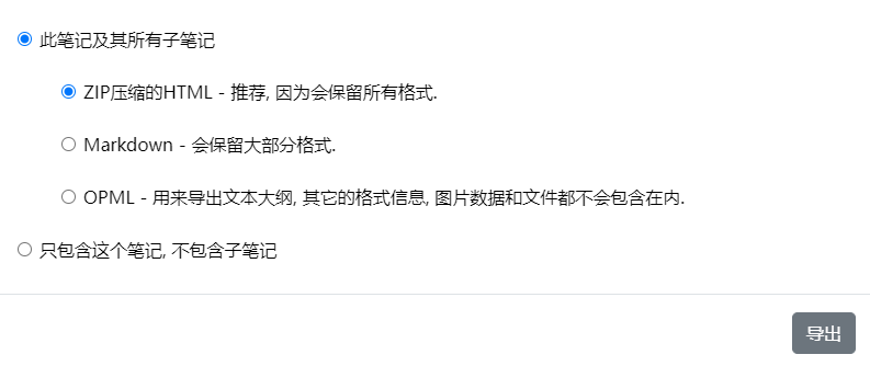 - 经过我测试,最安全的方式是将原来的整个笔记打包成zip导出。